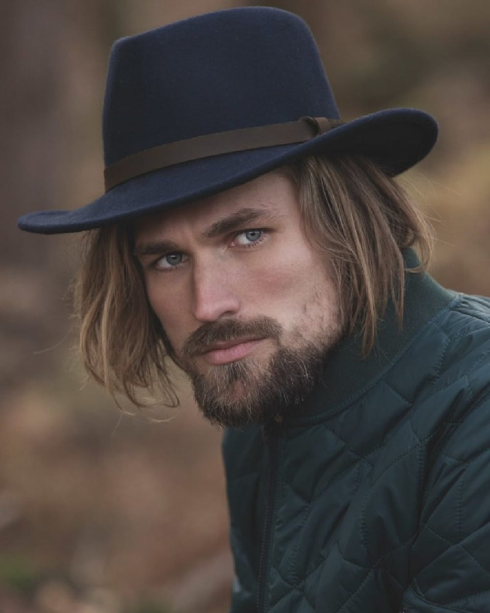 The crushable felt Bushman hat by Jack Murphy is part Ned Kelly, part Indiana Jones, and highly flattering. The all wool Felt construction offers great protection from the elements (wind and rain resistant) and is considerably warmer than a similar wide brim waxed cotton version.